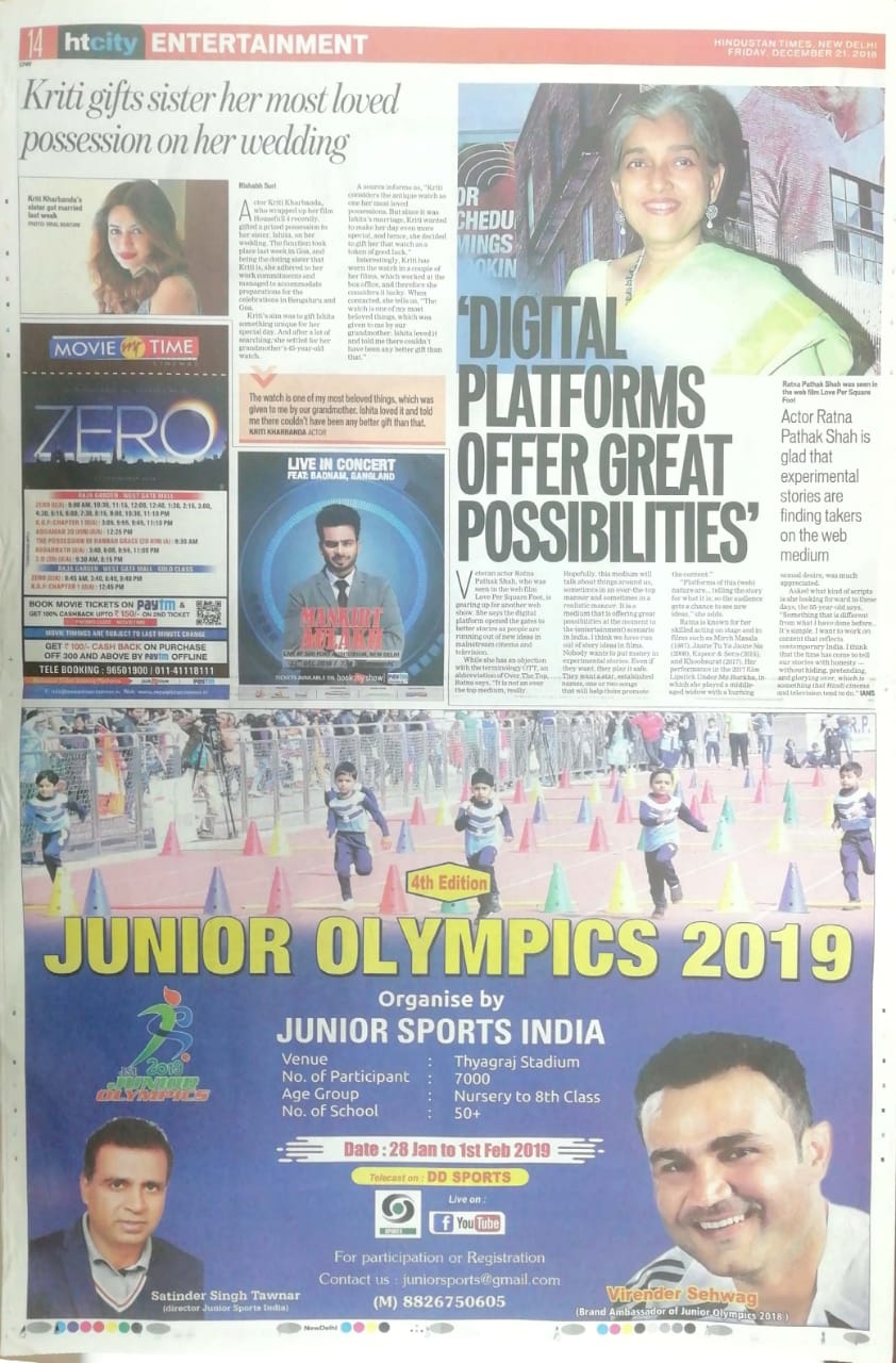 - Junior Olympic 2019 will be telecast on DD Sports.